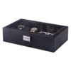 Store and display your collection in style with this sleek carbon fiber-pattern watch box. Designed with a clear display window and silver hardware, it holds up to 6 watches and 3 pairs of sunglasses, keeping everything organized and protected.