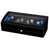 Keep your timepieces accurate and ready to wear with this sleek 8-slot watch winder. Featuring a blue LED-lit display, this elegant winder ensures smooth and precise rotation with five different winding modes. The plexiglass lid protects your collection while allowing you to showcase your watches in style.